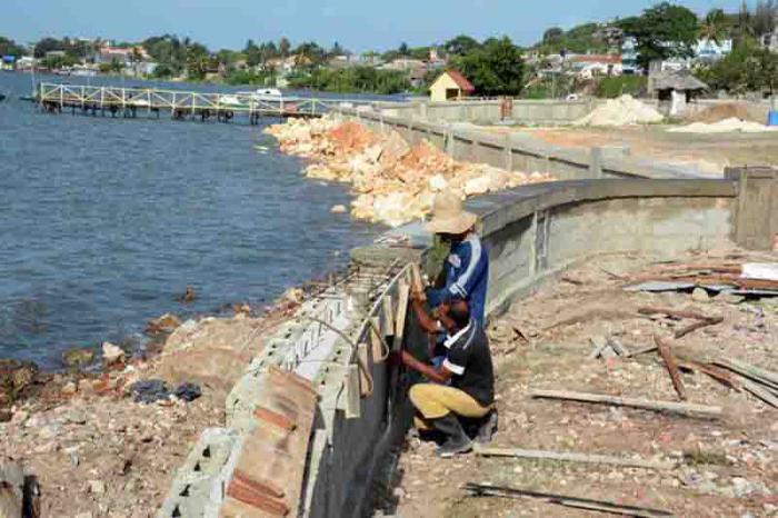 Construcción del malecón de la ciudad de Nuevitas, en Camagüey, con la contribución territorial. Foto: Rodolfo Blanco Cué (ACN)