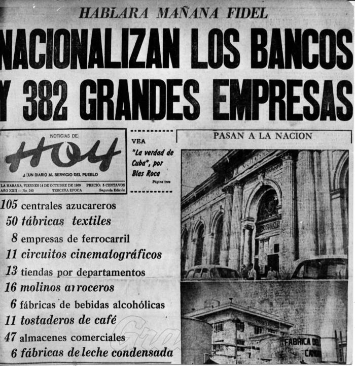 Es a partir de la Primera Ley de Reforma Agraria que se producen en Cuba los actos de nacionalización. La misma estableció el pago que se hizo mediante la emisión de bonos al cuatro y medio por ciento anual, amortizable en 20 años.