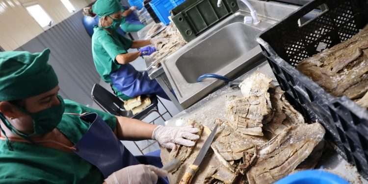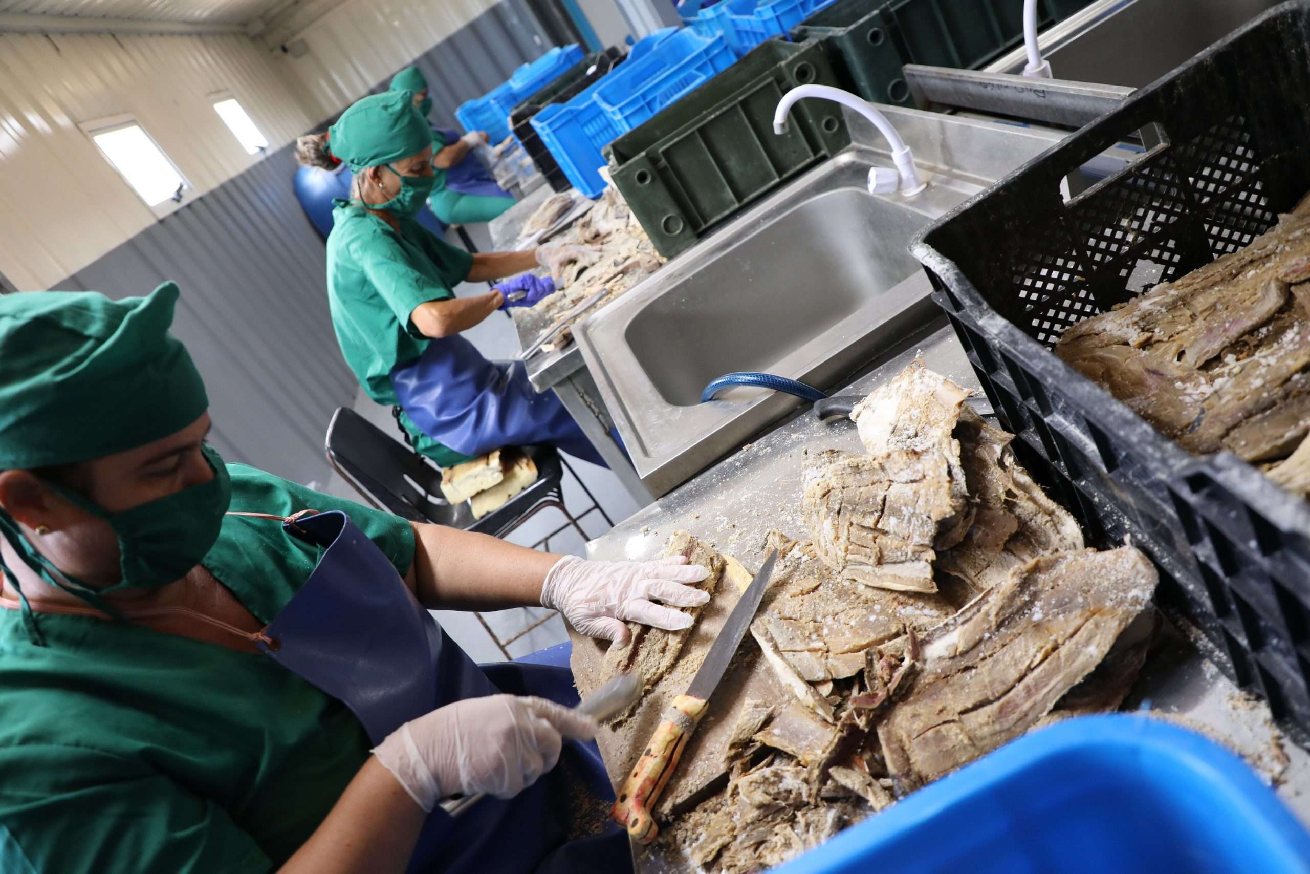 “En Boca de Cajío está enclavado nuestro acopio. Cuando el pescado llega va hacia el área de recepción y clasificaci ó n . Allí se cataloga por tallas y especies, y entonces pasa al área de procesamiento y sale hecho filetes, ruedas, masa o picadillo para empaquetarlo en bolsas de diferente gramaje.