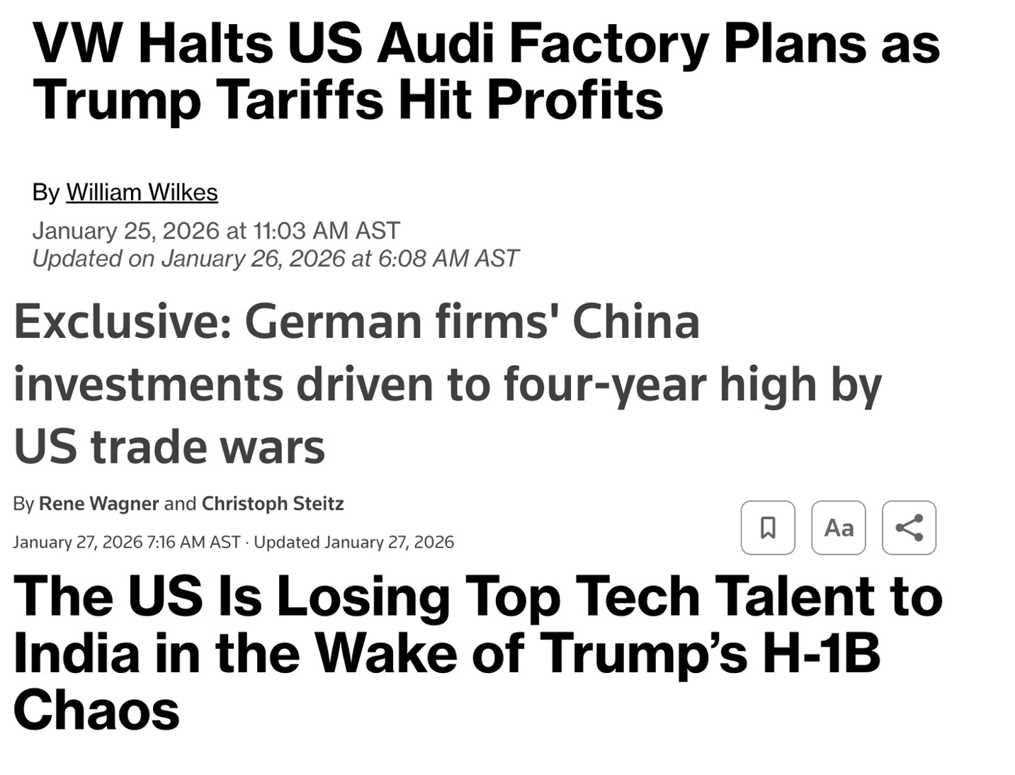 De hecho, los gobiernos no son los únicos que se están distanciando de Estados Unidos. Las empresas privadas extranjeras también se están distanciando. A continuación, tres titulares recientes: