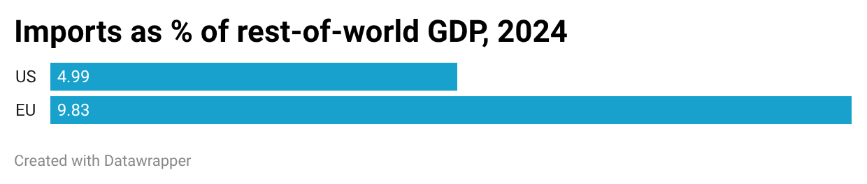 Y como también muestra el gráfico, al calcular la misma cifra para la Unión Europea, es casi el doble. En resumen, el mundo necesita más acceso a la UE que a EE. UU.
